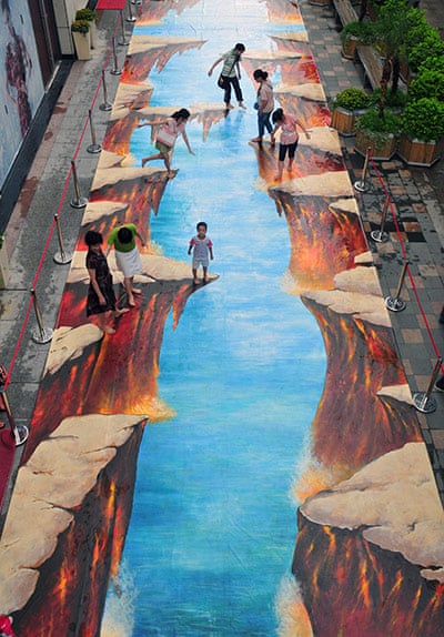3D street art painting is two dimensional artwork drawn on the street that gives you a three dimensional optical illusion from a certain.